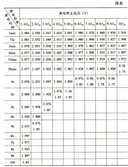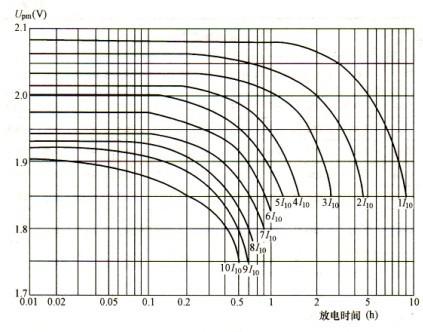 圖4—4閥控電池的放電特性曲線為增長(zhǎng)新粒子的結(jié)晶中心,以提高充電電流的效率。 5,10~10110放電曲線比1,10~4,l0放電初期端電壓和中期端電壓變化速率變化大,其原因是高放電率下的放電電流很大,電池極化作用隨電流增加而變大。 閥控電池不同倍數(shù)率的放電特性見表4—4。表4—4 閥控電池不同倍率的放電特性曲線表(25℃)