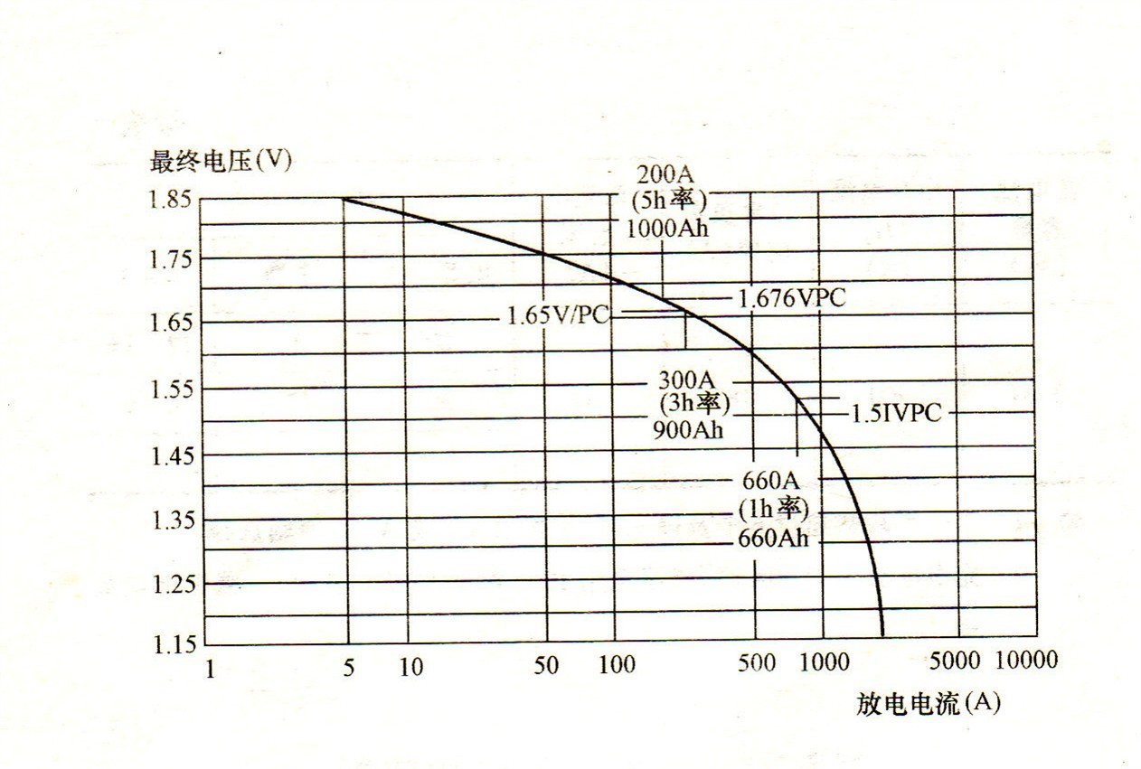 一組蓄電池中由多個單體電池組成。每個單體電池電壓一般為2V,放出80%的電量時電池的電壓為“終止電壓”,一般在1.65~1.75V之間。放電時電池的輸出電壓達到其“終止”電壓,即進入深度放電時,如圖6-3所示。放電速度迅速加快,當端電壓達到終止電壓時,電池不能再繼續(xù)使用,否則電池壽命大大縮短,且這時電池發(fā)熱,其用電設備工作在低電壓、不穩(wěn)定的供電狀態(tài)下,從而造成系統(tǒng)不正常運行、設備損壞和電池壽命縮短。閥控電池無比重計和液位計等,正常運行維護或均衡充電時,不能直接觀察電池的內部情況。電池質量好壞,一般用電壓表不能正常判斷,只能用蓄電池的電壓監(jiān)測裝置。由每個電池(或分組)的電池端子引接專用電纜或導線接到裝置中,接線復雜且影響直流系統(tǒng)的絕緣水平。正常浮充電運行測量電池浮充電壓估計電池容量的方法,實際上是不確切的,因為電池容量和浮充電壓之間無固定的關系,電池的內電勢與環(huán)境溫度、充放電過程等有關。常用的辦法是定時做放電試驗,但只能測出每個電池(或電池組)的容量不足。目前國內已有一些制造廠研制蓄電池監(jiān)測裝置,但缺乏運行考驗,有待成熟和完善。